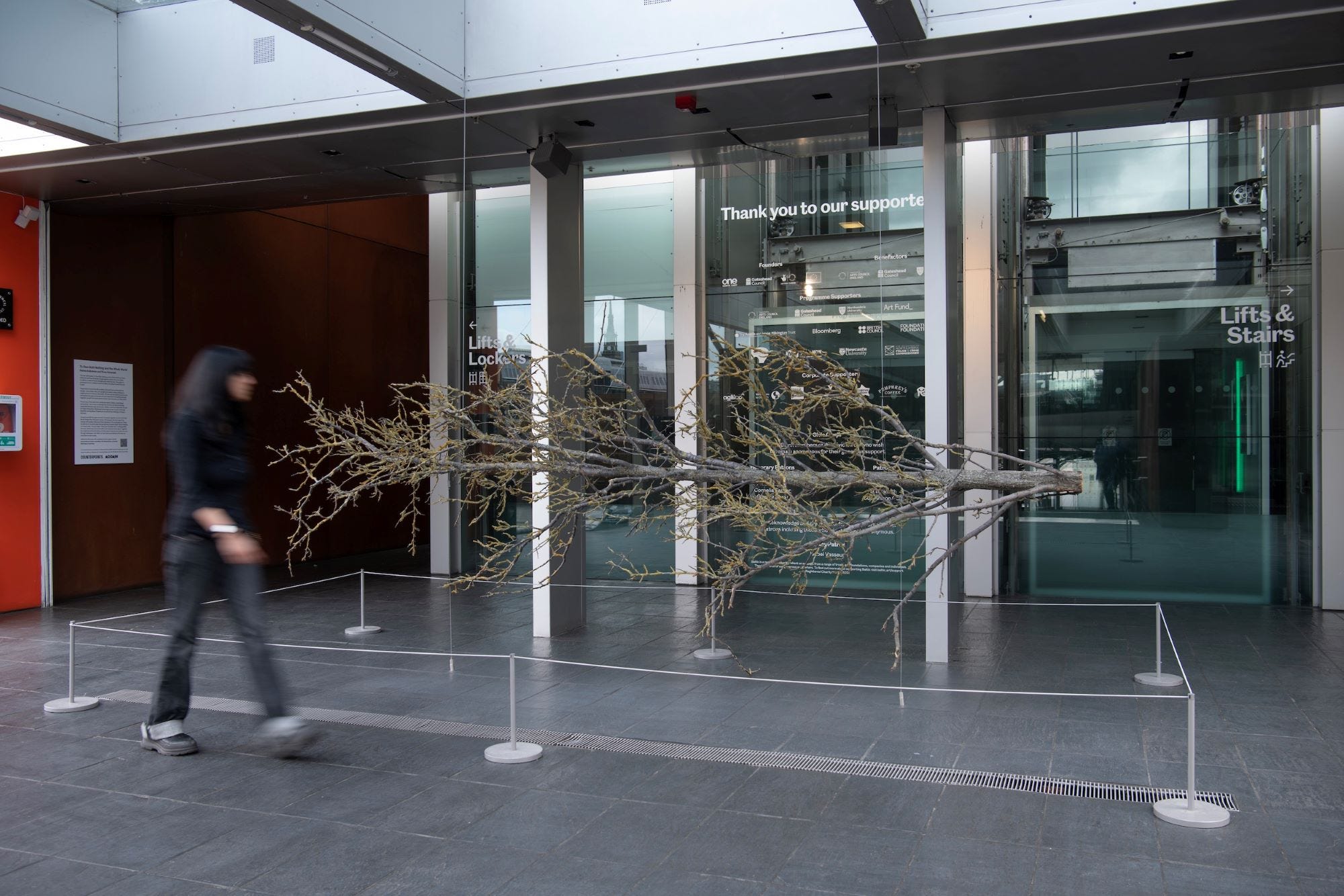 Equally arresting is the sapling displayed horizontally in front of the lifts. It fell near Henna’s home during a storm and she recruited volunteers to carry it to Baltic in a kind of stately procession symbolic of migration.