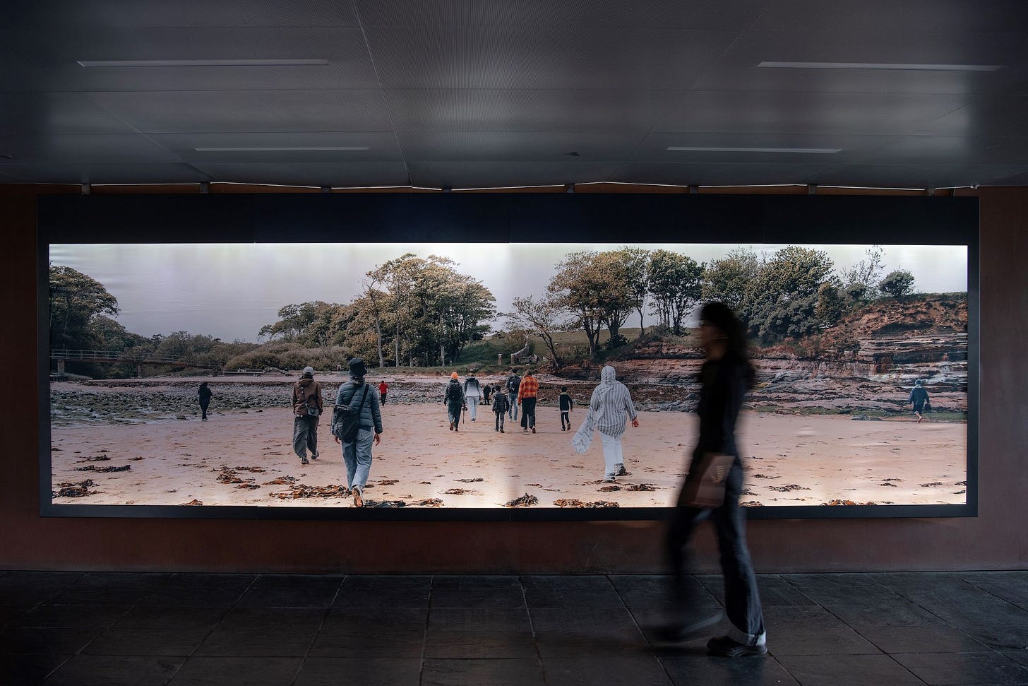 Henna led a walk at Howick Hall and a panoramic shot of the walkers on the beach is displayed in the Baltic entrance light box.