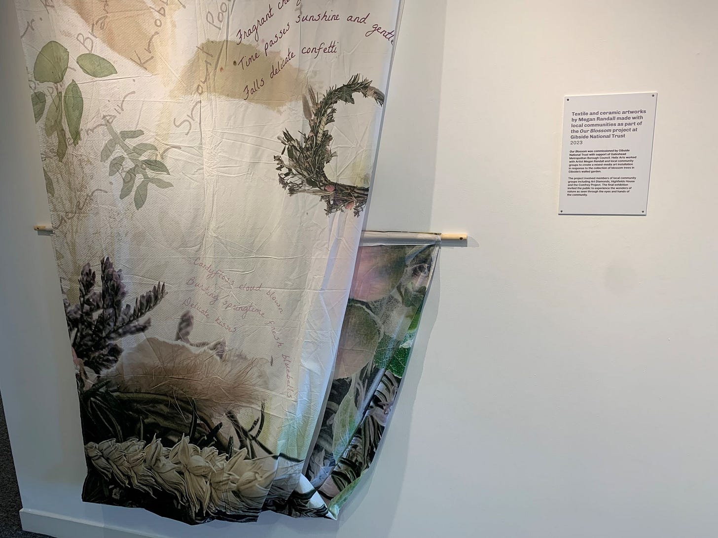 Opposite, billowing in a draught on the day I visited, is Our Blossom, an eye-catching textile creation by Megan Randall who worked with community groups on a Helix Arts project at Gibside, the National Trust property, in 2023.