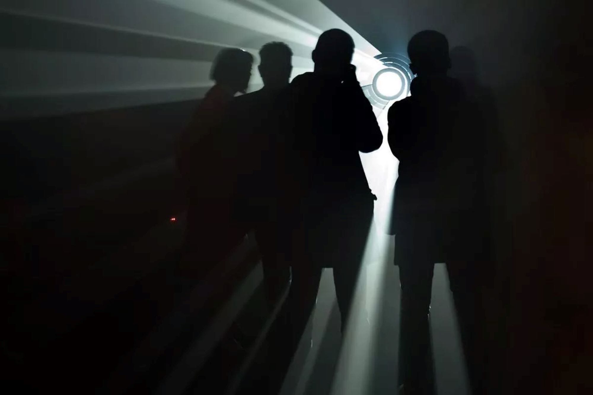 People stood mesmerised before a screen seemingly positioned at the end of a tunnel of light while listening to recordings which included chanting Buddhist monks and American author Maurice Sendak discussing old age.