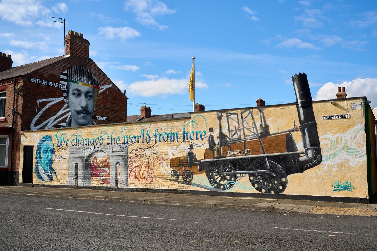 Commissioned by the Arthur Wharton Foundation and funded through Darlington Borough Council’s Creative Darlington project, We Changed the World from Here was created by artist Dan Walls (Illumination Wall Art).