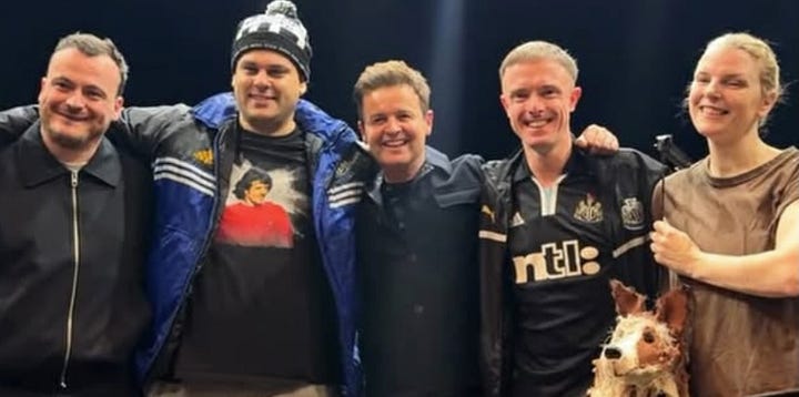 The cast of Gerry and Sewell welcomed some high-profile Geordie support during the final week of the production’s two-week West End run.