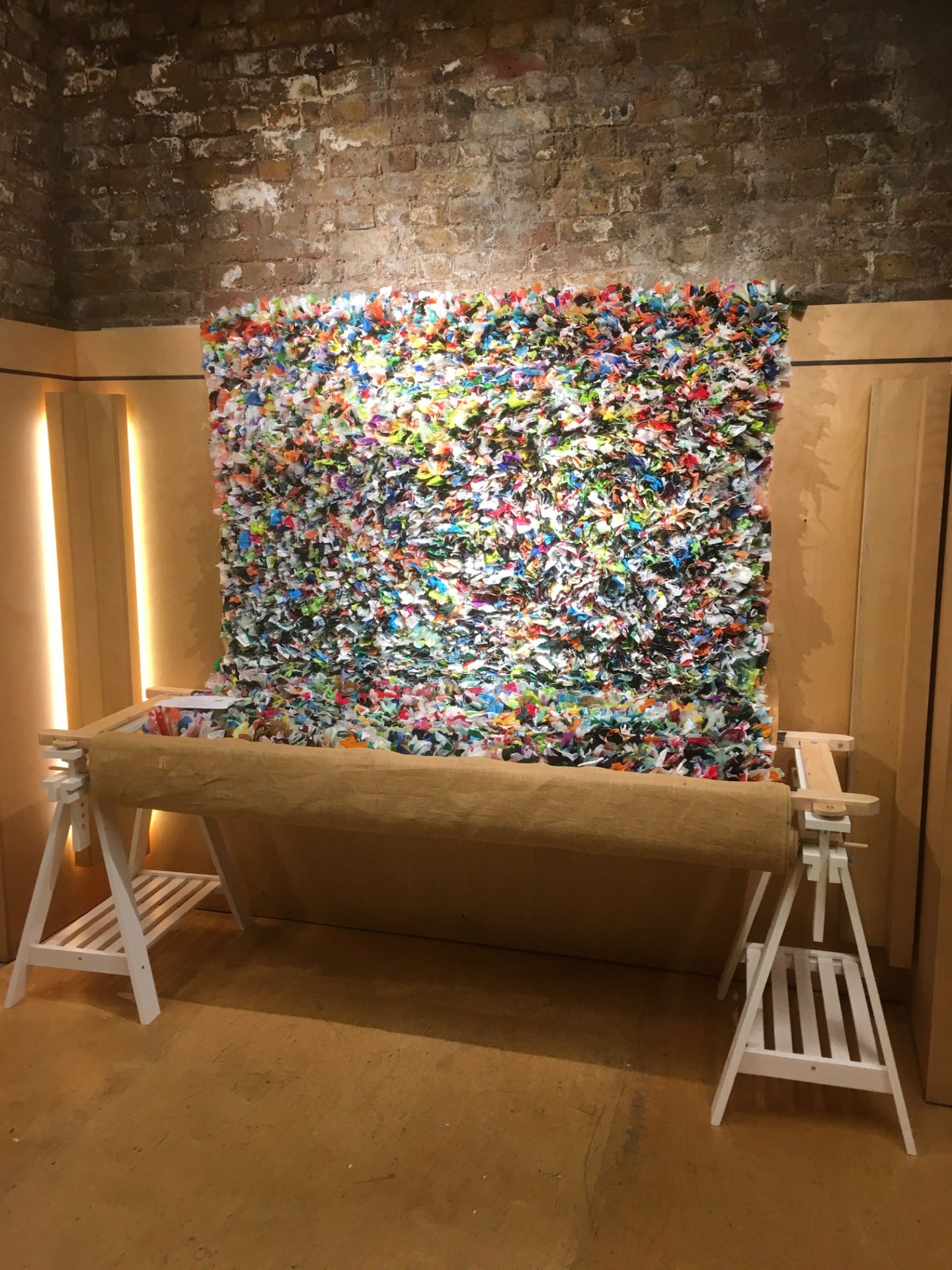The exhibition includes a proggy mat and a quilt made from waste plastic. “These sort of items used old clothing and cloth and were original forms of recycling,” said Jackie.