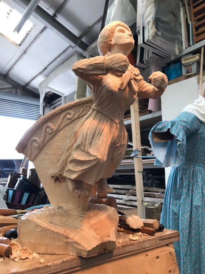 The sculpture references Mary Ann’s long sea journey and the North Shields tradition of the wooden dolly figureheads.