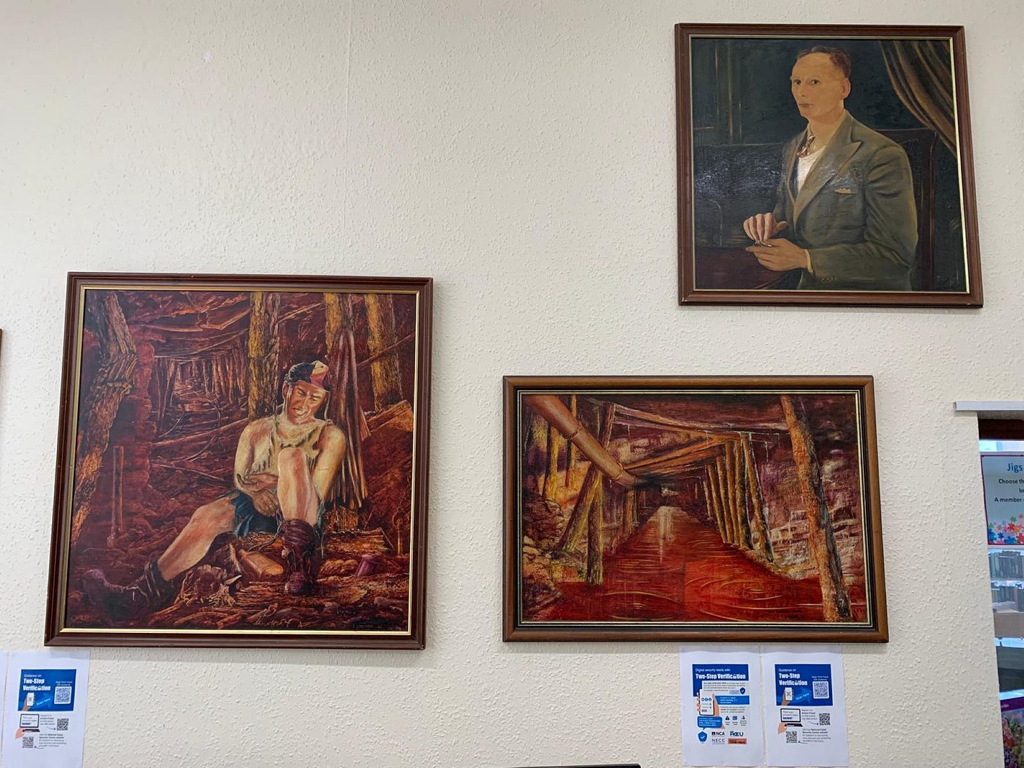 Ascending the stairs you will be halted by another lofty manifestation of Blyth culture, a vast painting of a near naked young woman being abducted by a caped man Kath called “a cantankerous old goat”.