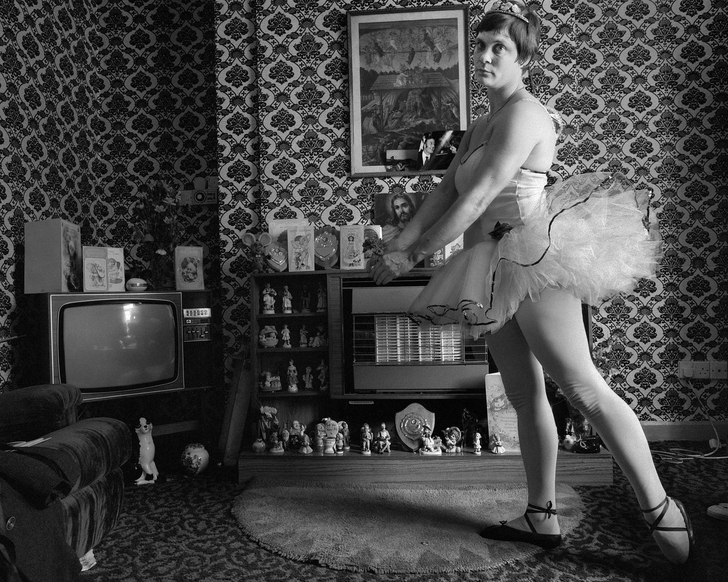 Dancing also offered a release from the grind of work, as clearly demonstrated in the case of Margaret Bull, photographed in a ballet tutu but whose day job, in what must have been very much a man’s world, was shovelling coal as a stoker and caretaker.