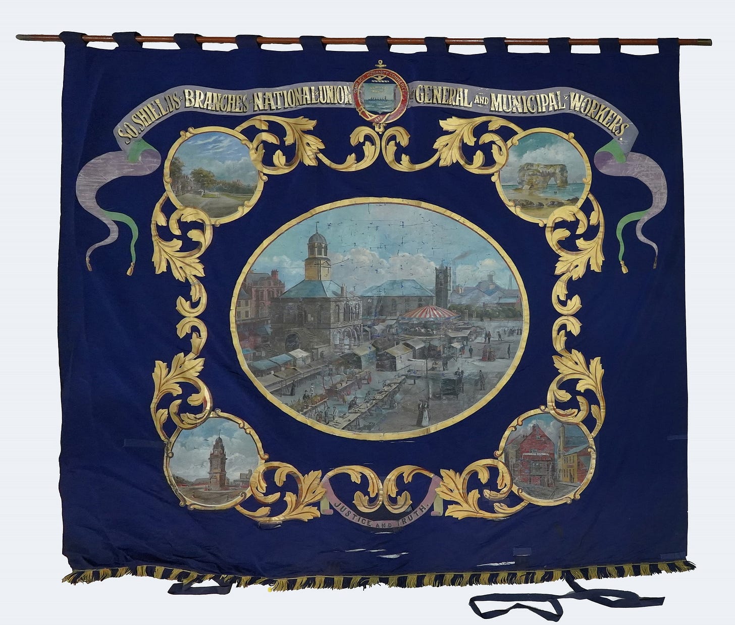It was created by Samuel Peacock of Baring Street in South Shields who, in addition to being a banner maker, was also a dealer in china and an insurance agent.