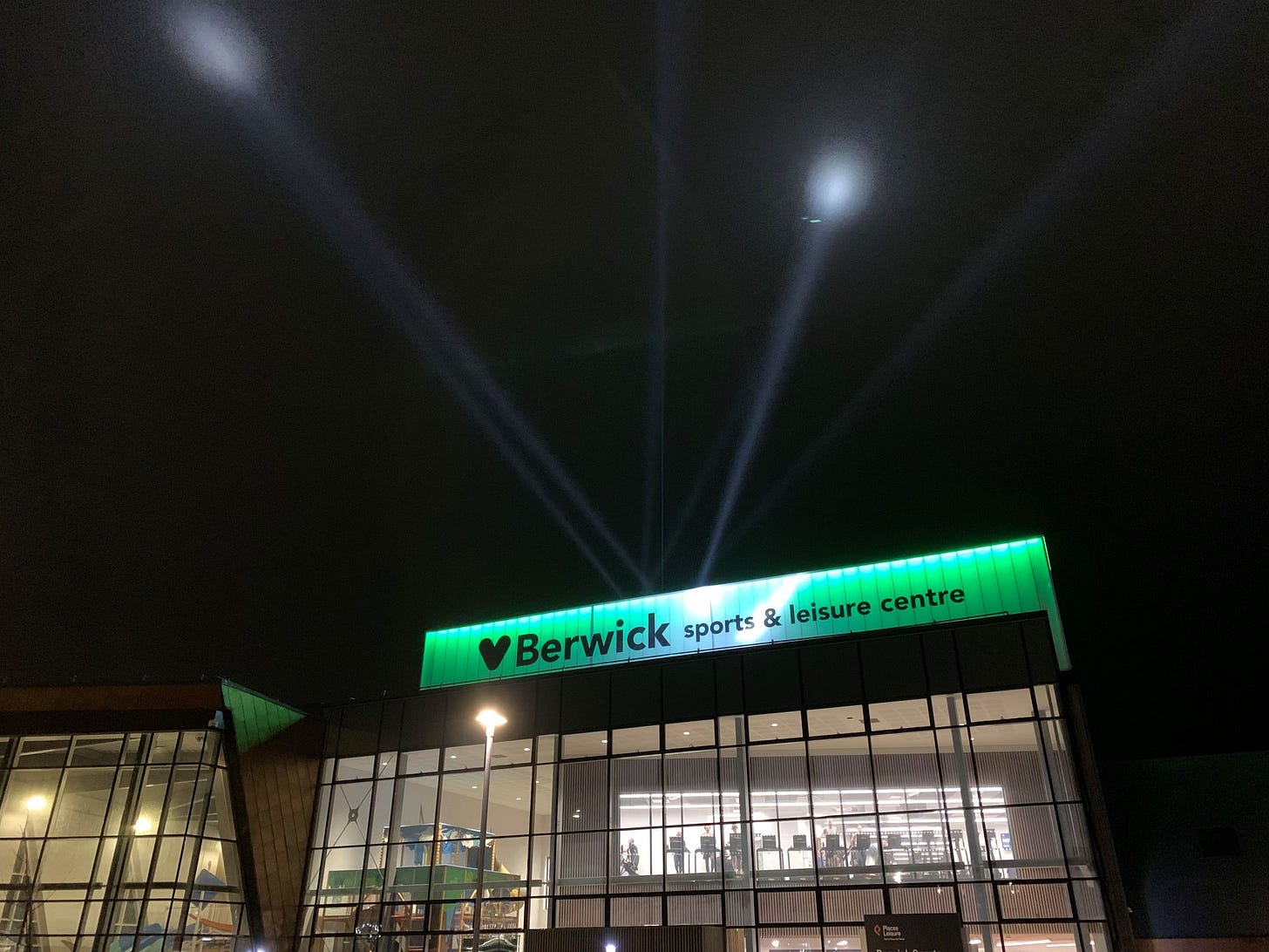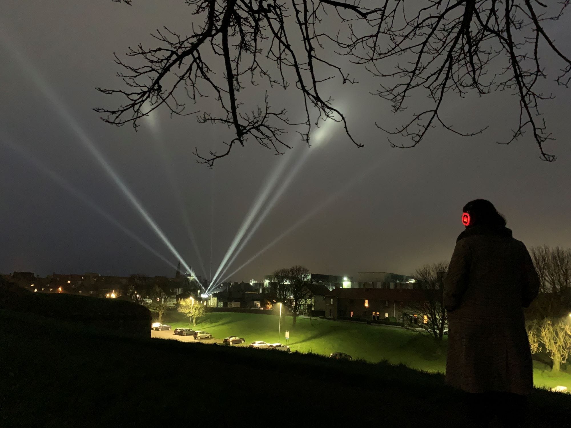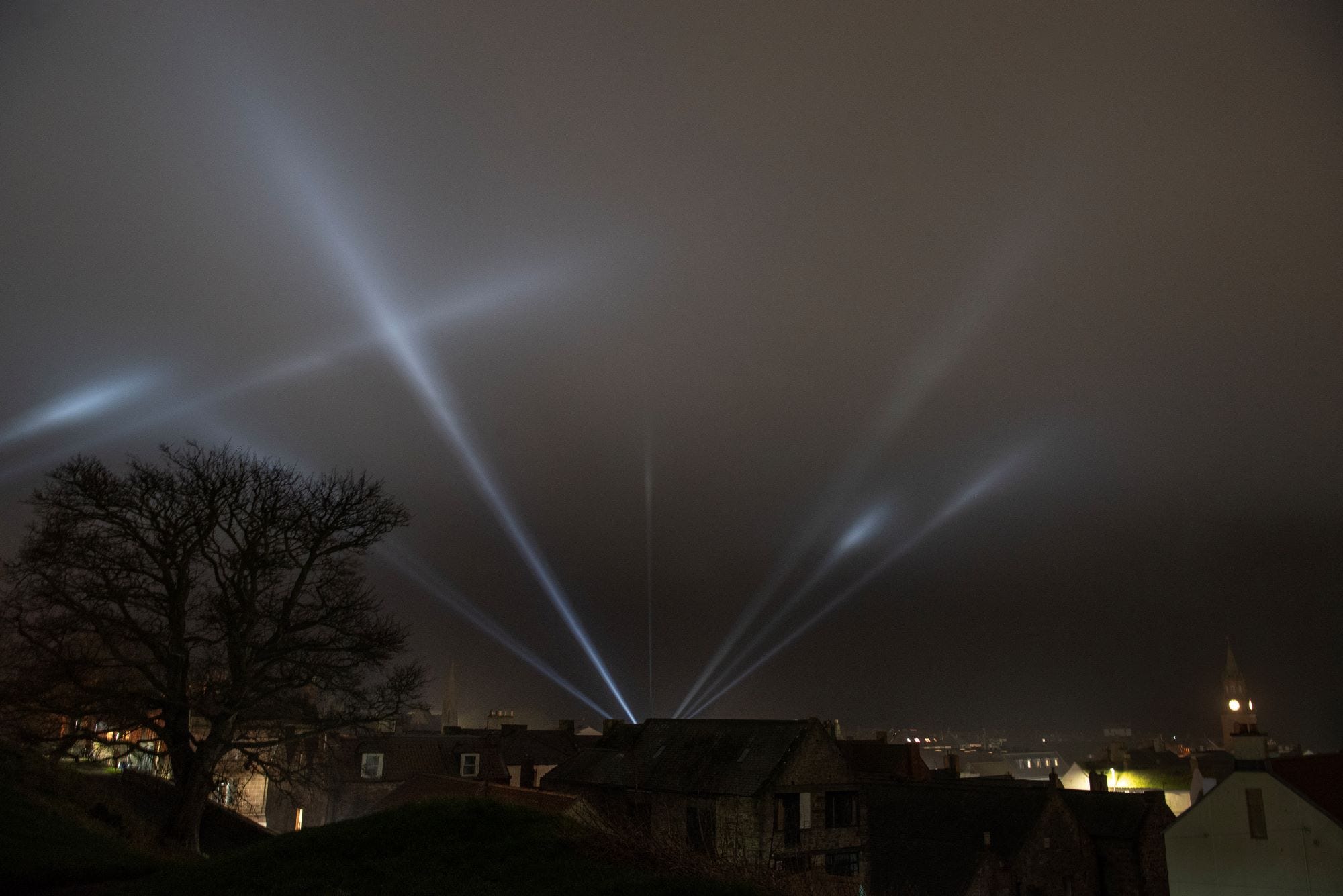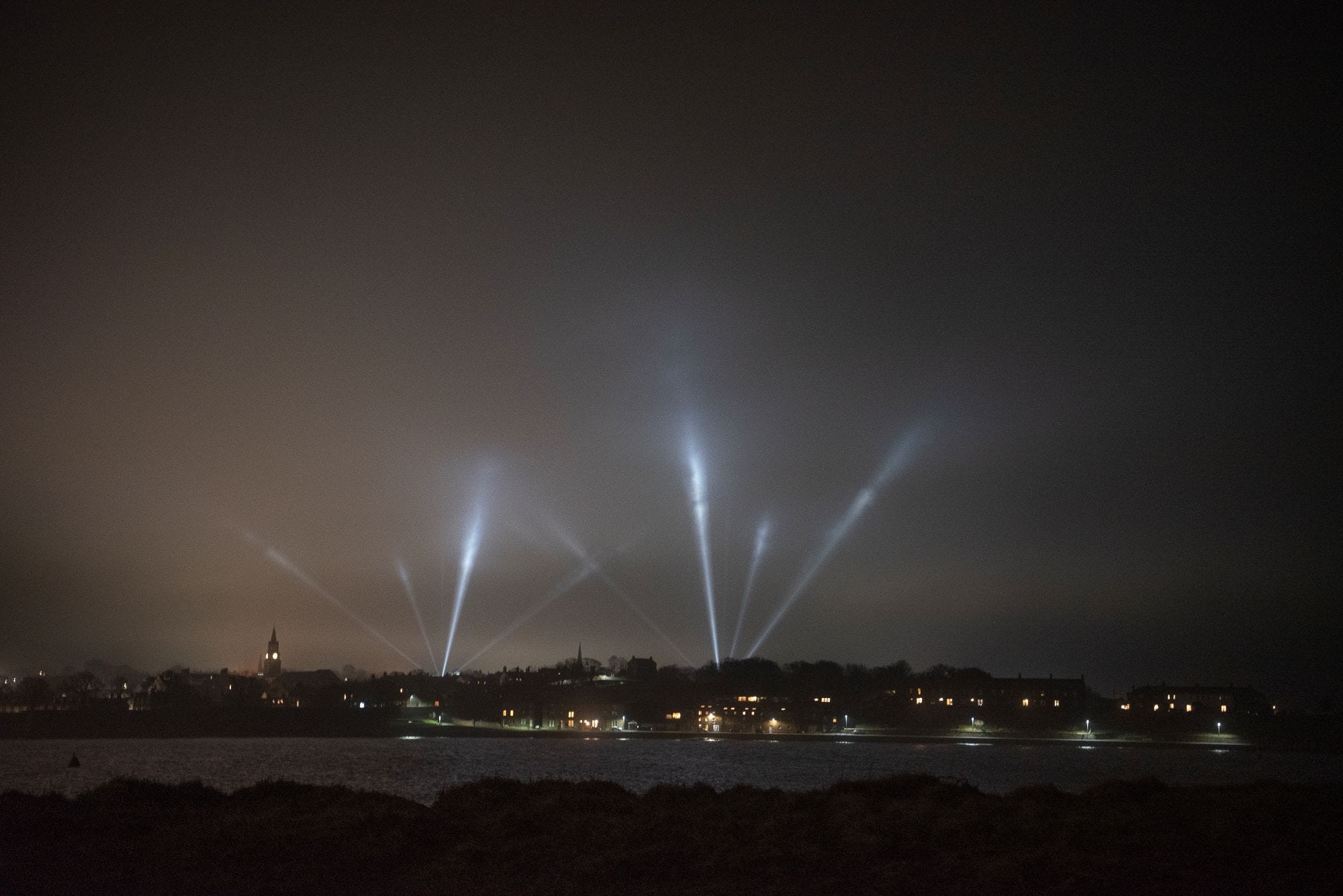 Between 5.30pm and 8.30pm each night – until February 22 – beams of light probe the sky (the clouded sky as it was on Monday) from three sites: Berwick Barracks, Berwick Infirmary and the flashy new Berwick Sports & Leisure Centre.