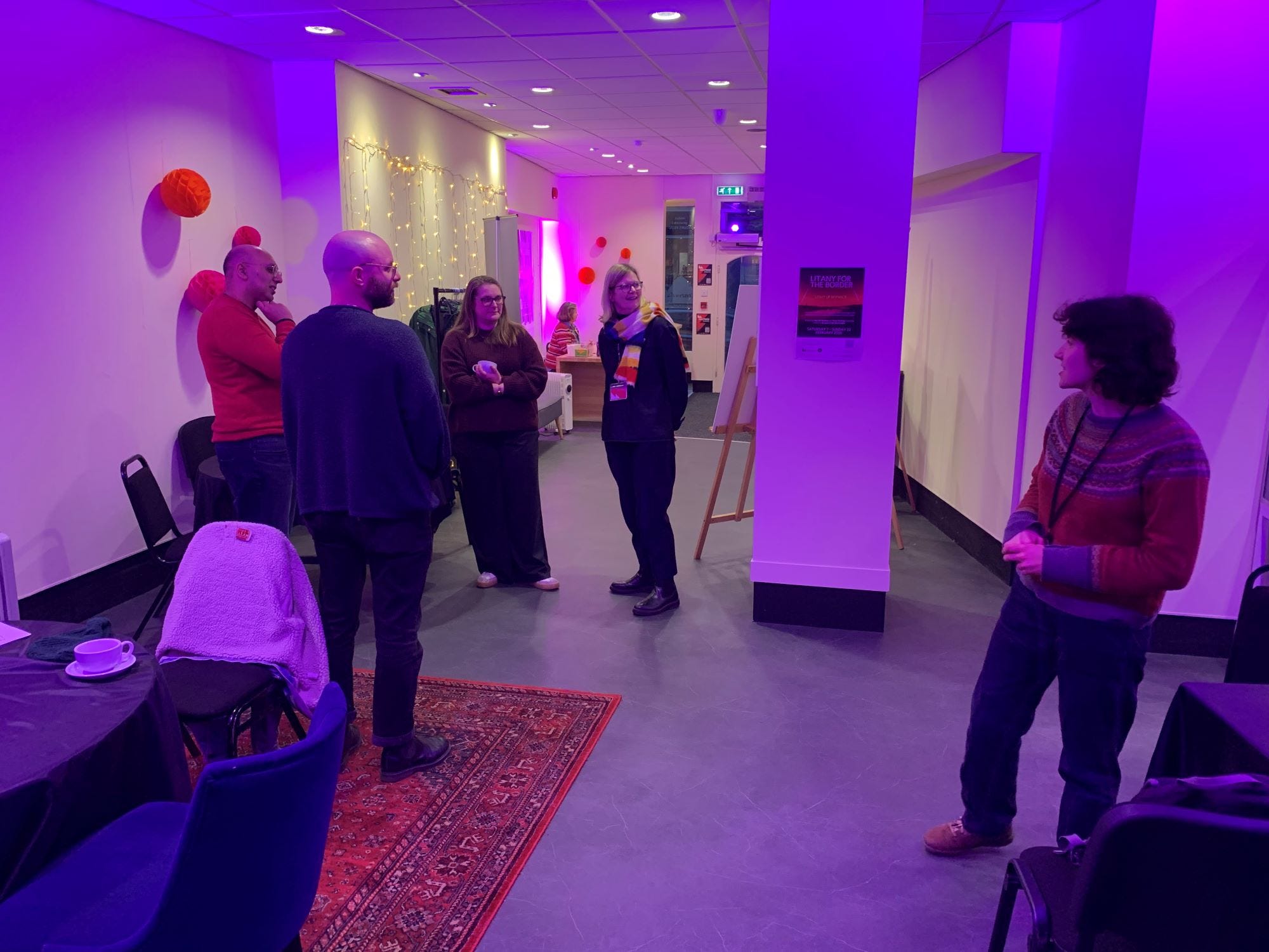 For the coming days, it will serve as the information centre for Litany for the Border… and it was from there that we ventured out into the gloom to experience it for ourselves.