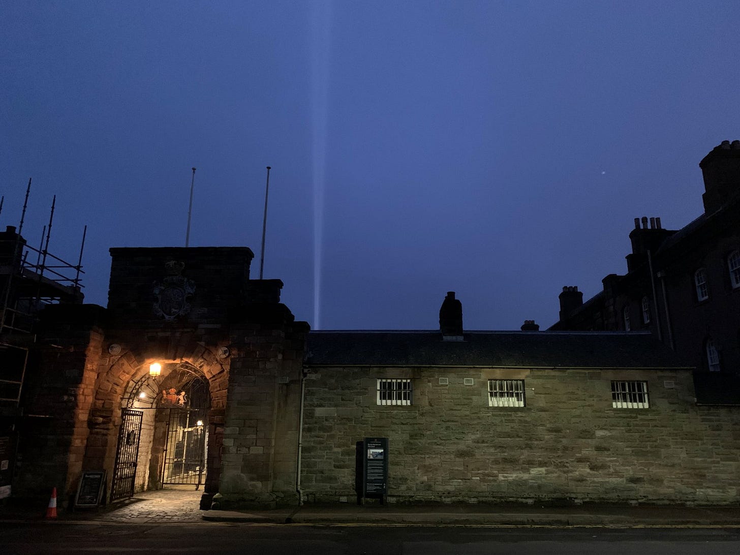 It would be fair to say it made its presence felt gradually, the first beams from inside Berwick Barracks tracing faint lines against a sky still not quite dark. Standing on the wet grass, we craned our necks.