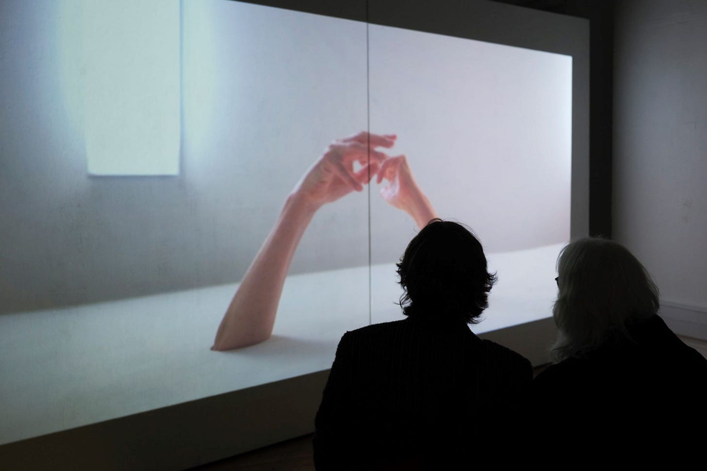 Dominating the space is a video she completed in 2018 whose title, Hand Gesture Film, describes it perfectly.