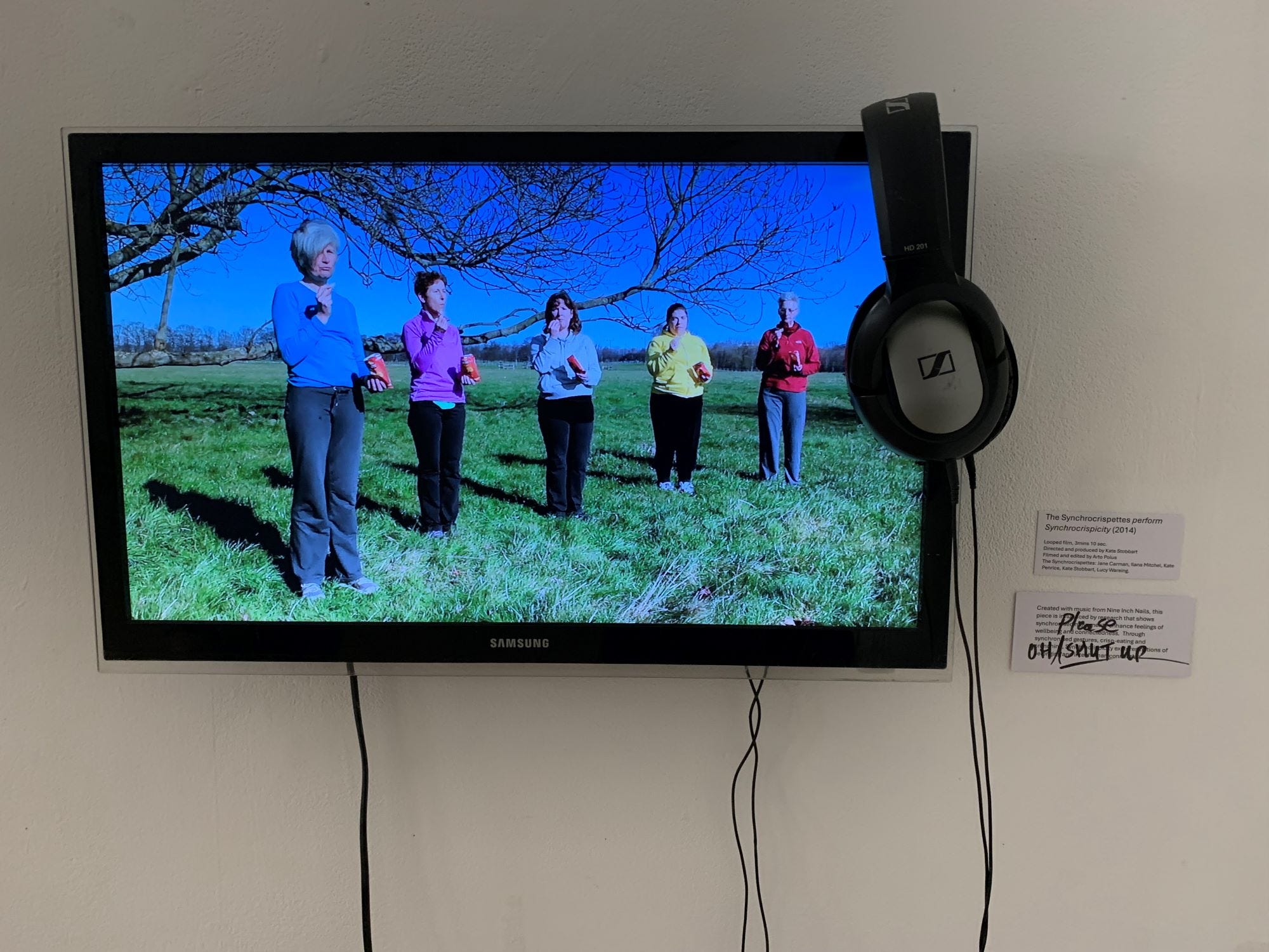 Another video shows a group called The Synchrocrispettes performing Synchrocrispicity - essentially Kate and four other women eating crisps in a rural setting. Through headphones you can listen to a Nine Inch Nails number as you watch.