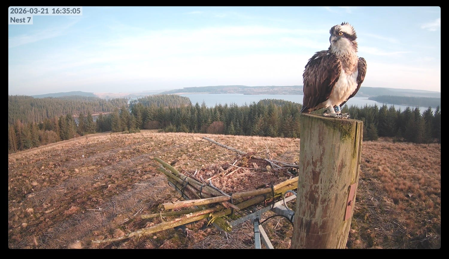 Perhaps KX7 is determined to renew her claim to nest 7, with its sweeping views over Kielder Water and proximity to the reservoir for fishing.
