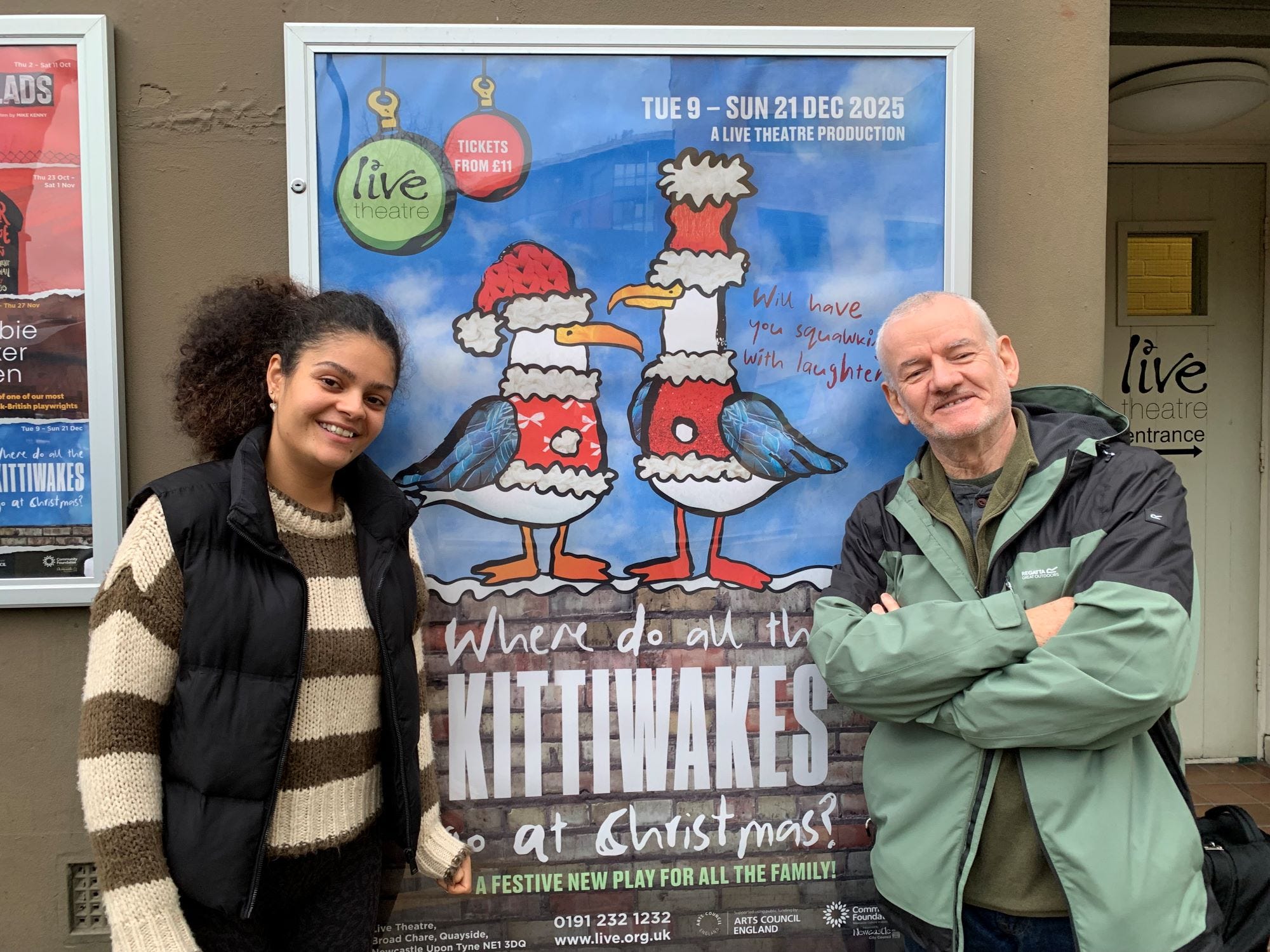 Where Do All The Kittiwakes Go At Christmas? opens on Tuesday, December 9 and runs until Sunday, December 21 in Live Theatre’s upstairs theatre space – with no danger of getting splattered from on high!
