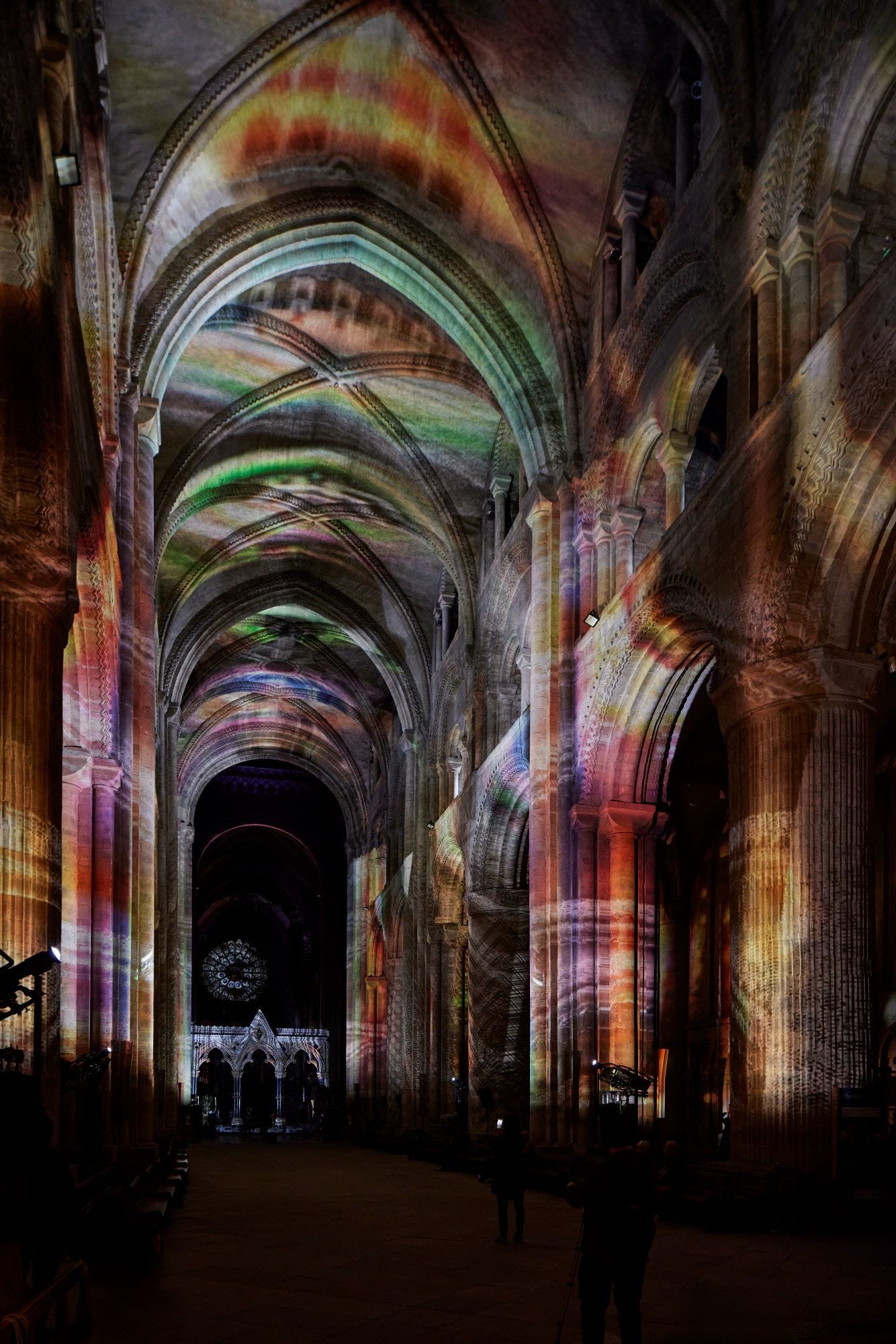Called Everyone Ever, it throws swirling patterns across the soaring internal architecture to an accompanying majestic soundtrack.
