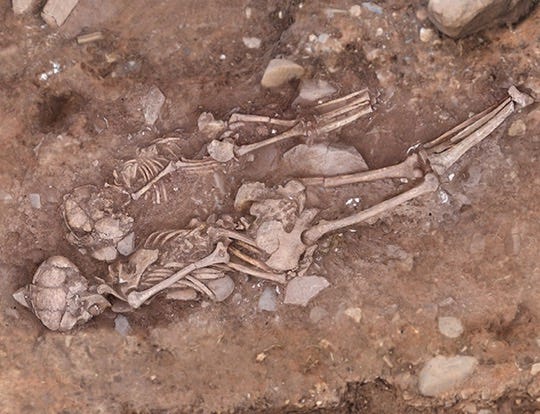 Another grave appears to have been a woman, buried with several young children around her, with two more individuals above.