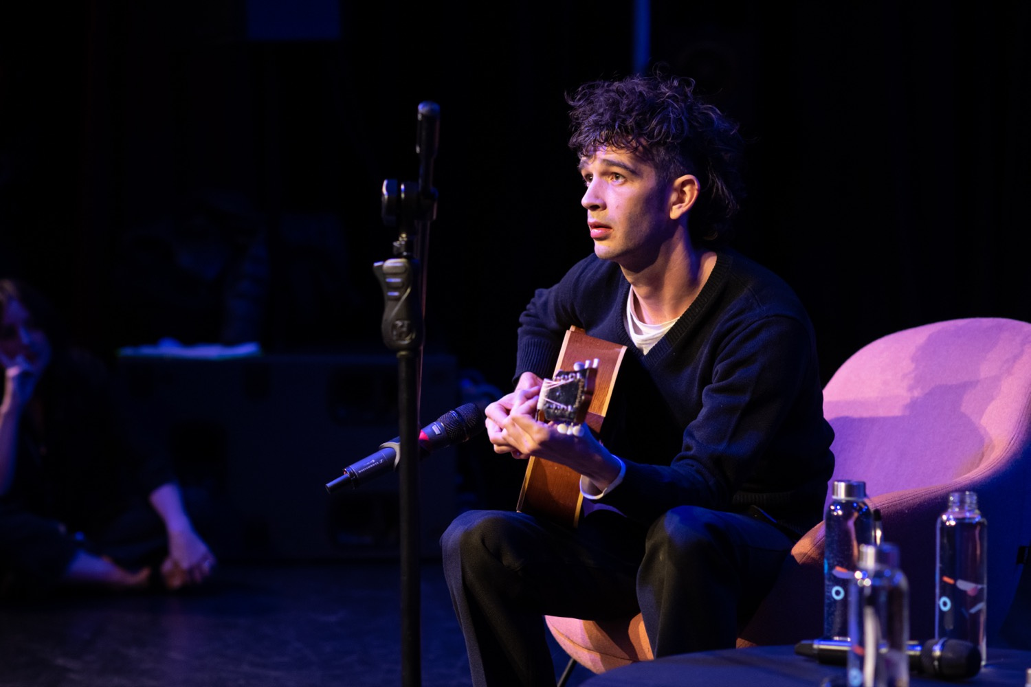 Matty fielded questions on craft and industry realities before standing up to show and tell them “how easy it is to write a 1975 song”.