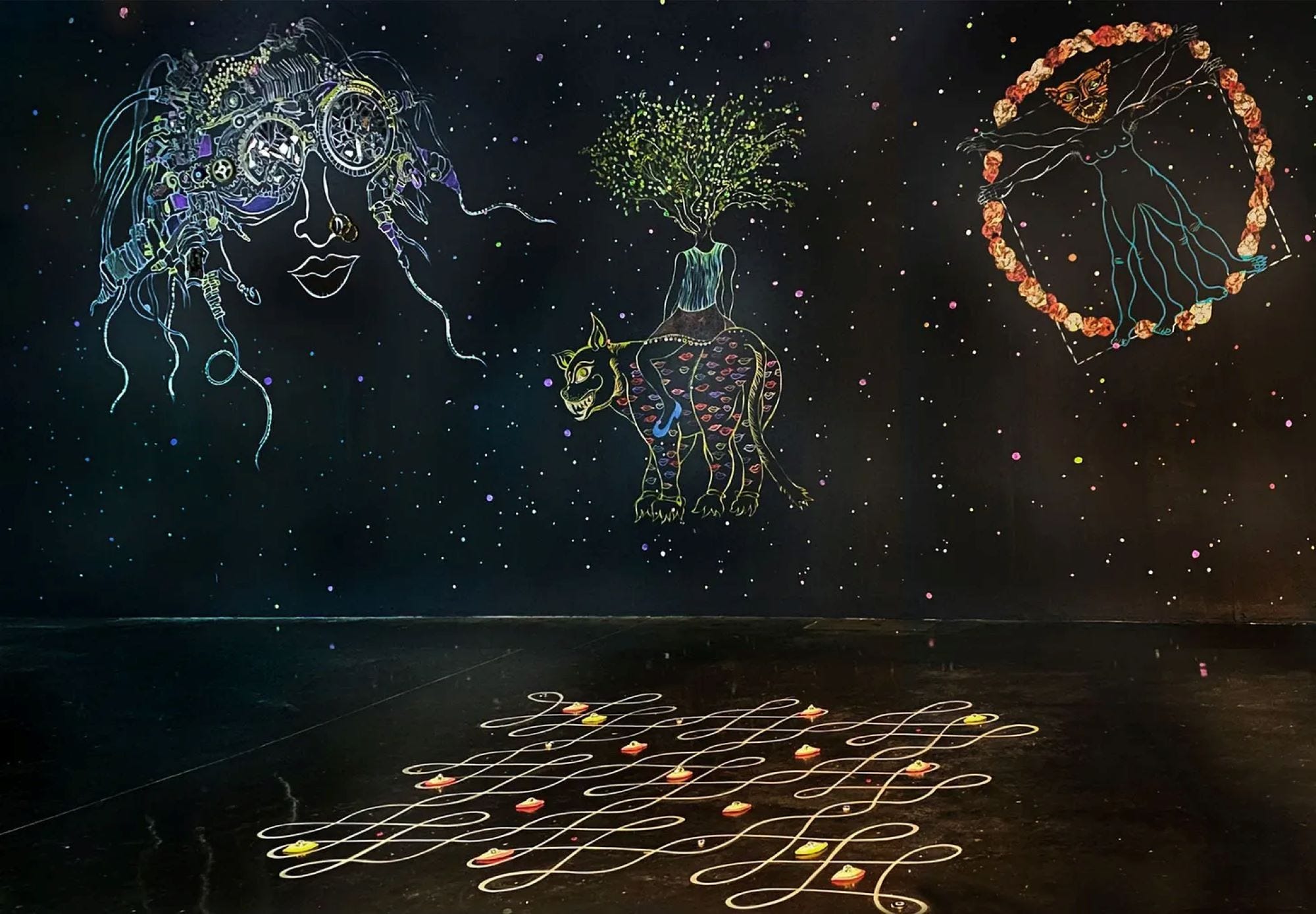 “Ganesh’s work,” say Baltic, “creates richly layered worlds that probe epic myths and historical narratives to offer speculative visions of society.”