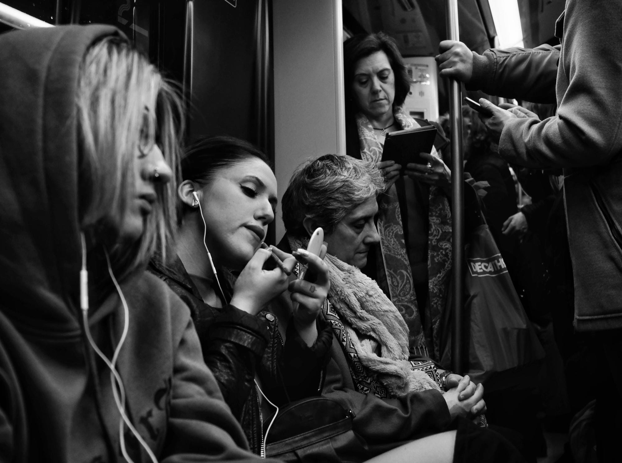 I visit my family in Madrid two or three times a year, and there is usually not a lot of dedicated time to do my photography. However, I always carry my camera with me, and over the years I have built a decent portfolio of images taken on public transport there.