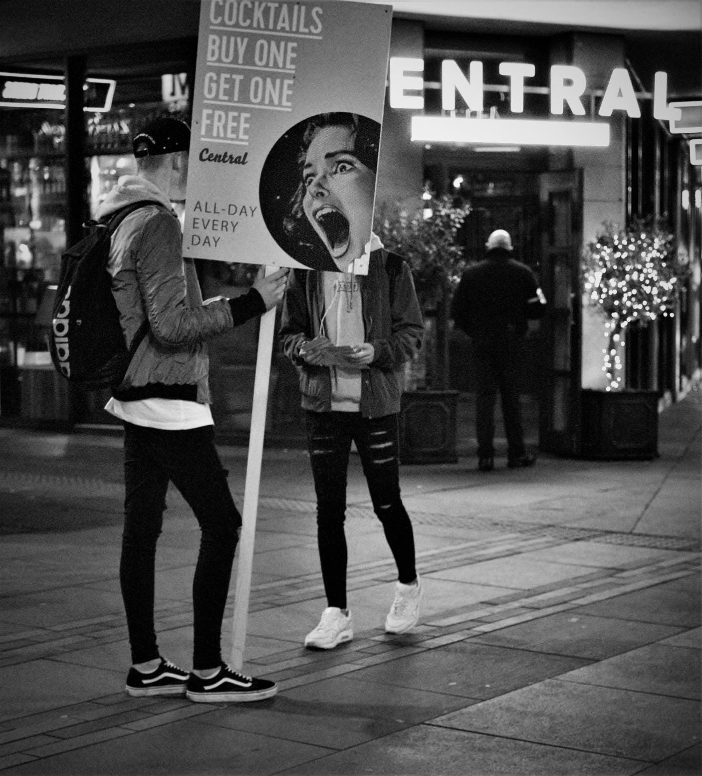 This photo was early in the project, and it’s still one of my favourites. I saw the placard and moved to align it with the head of the person behind it. I know it makes people smile, and that makes it even better.