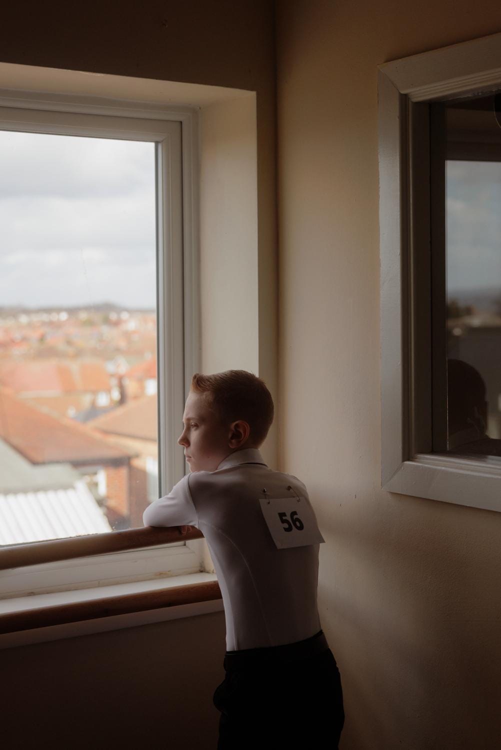 His chosen portrait depicts Abe in a rare moment of stillness, gazing from the window of a Newcastle dance studio over the city’s West End.