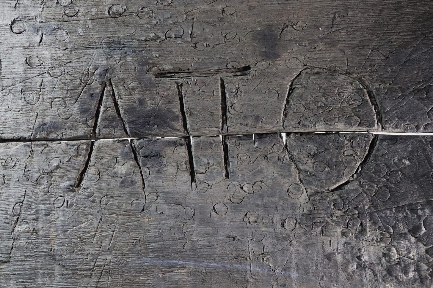 A plank from a workbench provides a direct link to its owner, who carved his name Atto into the wood.