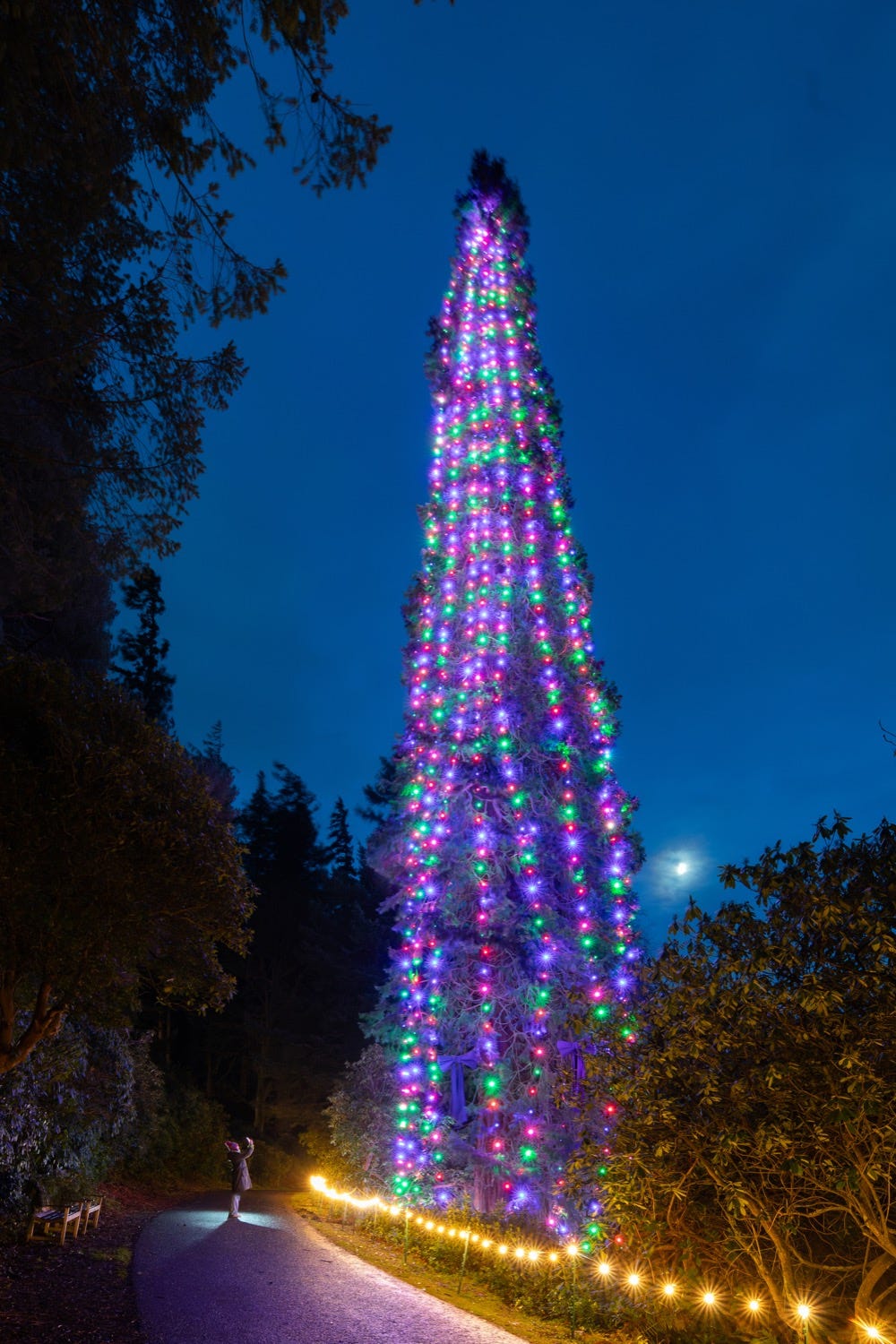 The 44.7m giant redwood (Sequoia wellingtonia) is dressed in over 1,300 lights, with the towering festive showstopper standing at more than twice the height of the Angel of the North.