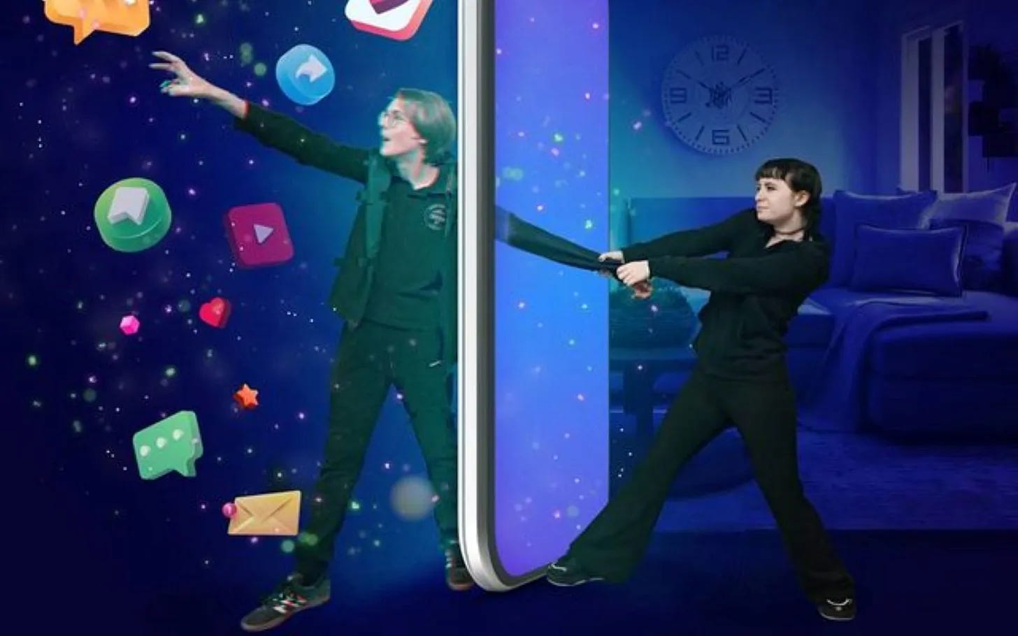 This tension between generations - and differing perspectives on digital life - runs throughout the piece. The show acknowledges both the positives and the risks of being online.