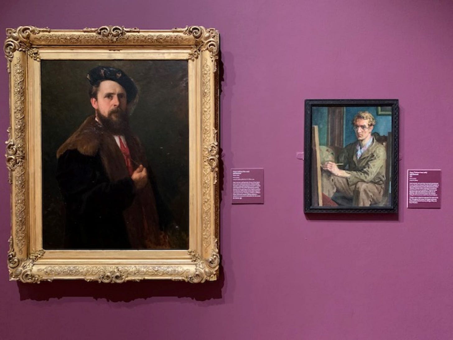 He’s been positioned here in an artists’ corner between self-portraits of Newcastle-born Robert Jobling and the Irish artist William Orpen who produced paintings from the trenches during the First World War but also liked to depict himself flamboyantly dressed – here aping an 18th Century French artist, Jean-Baptiste-Siméon Chardin, and looking ever so faintly clownish.