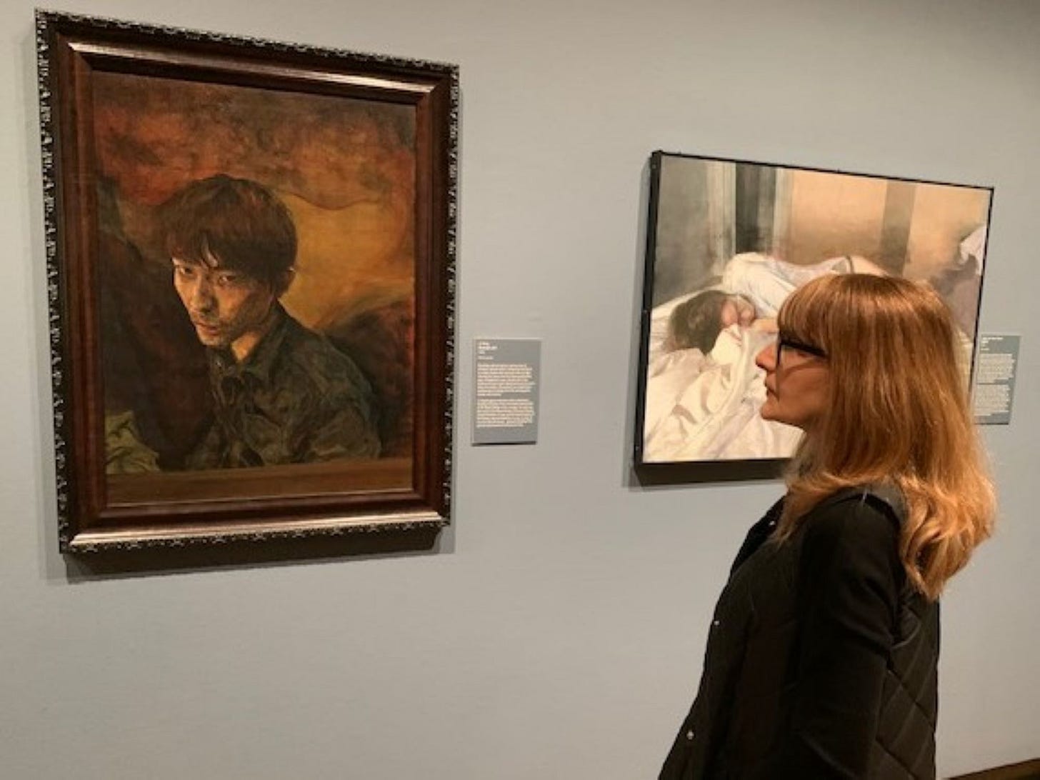 There are paintings by Francis Bacon and Frank Auerbach, big and little and side by side. Auerbach, who died in 2024, also painted his wife although in a way signalling – so we are told - the changes in her life.
