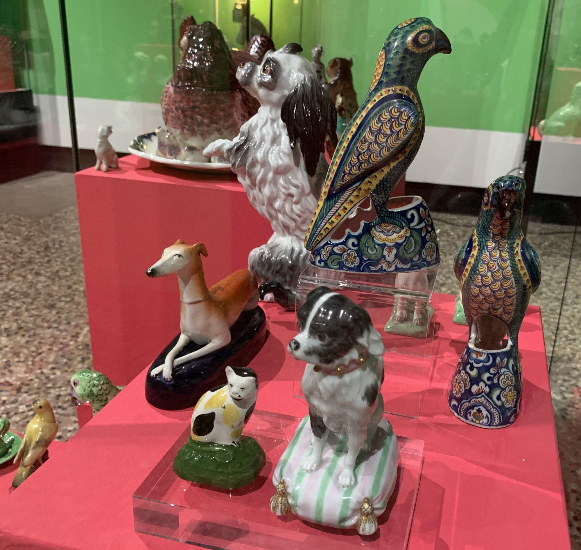 Another attractive feature of the exhibition is that it brings together into a little ceramic ‘zoo’ creatures previously scattered around the premises.
