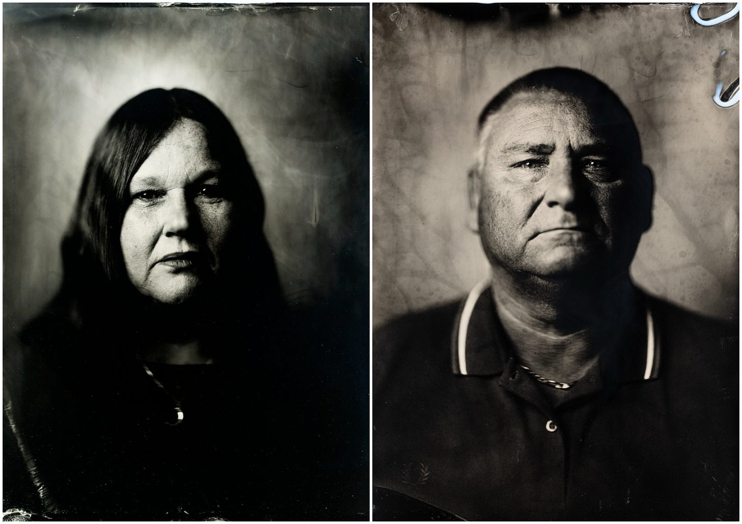 He specialises in a photographic technique known as the wet collodion process, which dates from 1851. The images are produced by hand on sheets of metal and glass.