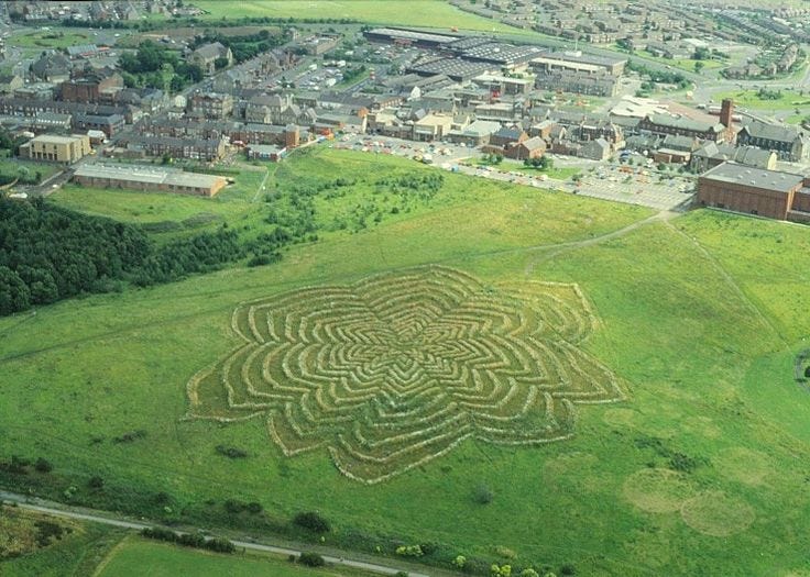 This fascination with nature, place and landscape continued into his work with Sustrans and the Sea to Sea (C2C) cycle lane art trail, and his major earthwork Flower Mine. The shallow mounds and seasonal flowering ox-eye daisies revealed a huge flower drawing that covered the site.