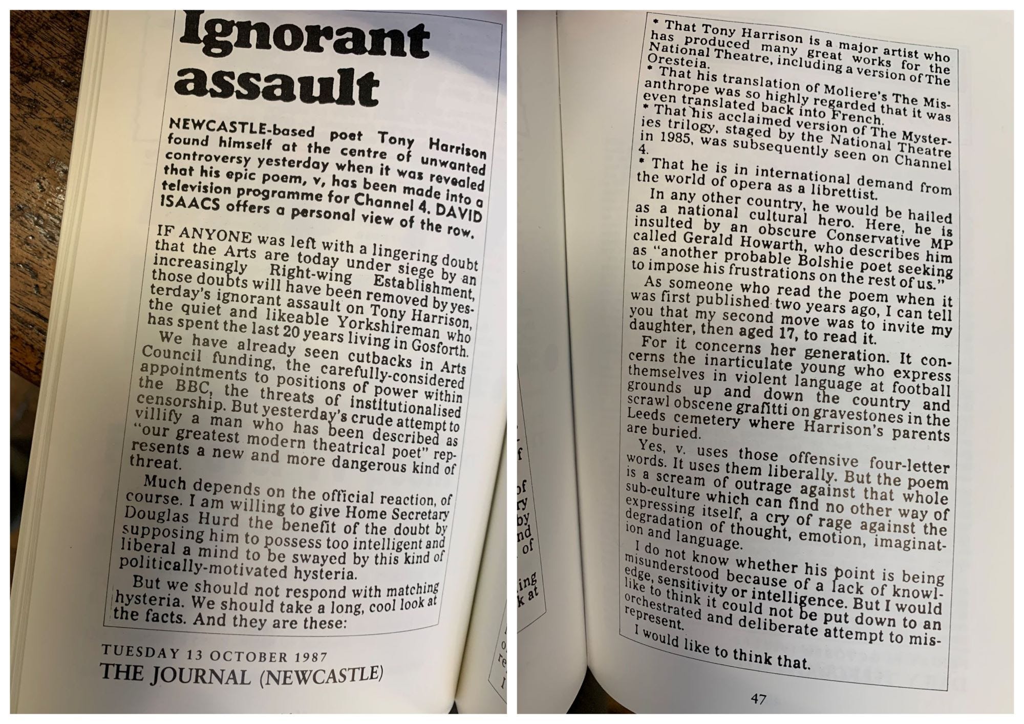 V. won a Royal Television Society Award and Bloodaxe Books, which originally published the poem in 1985, produced another edition with photographs by Graham Sykes and much of the press hoo-ha included at the end.