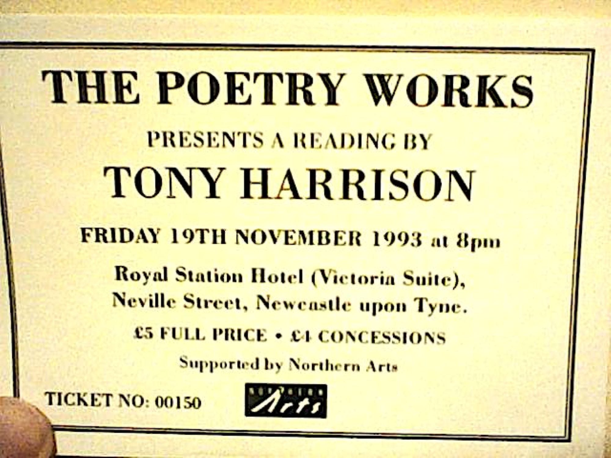 I’m not the only one who remembers a reading he gave at the Royal Station Hotel in Newcastle in 1993 when a large audience sat mesmerised. Tony Harrison was a terrific reader of his own work and it seemed tailor-made for his gruff Yorkshire delivery.