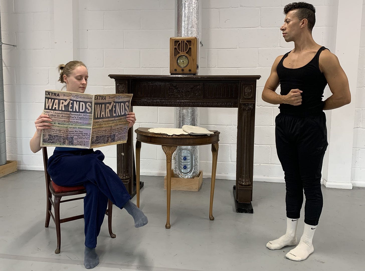 As we speak, two of the five dancers, Yamit Salazar and Amy Becke, rehearse section one, in which a young couple hear war declared and realise he may soon be called up to fight.