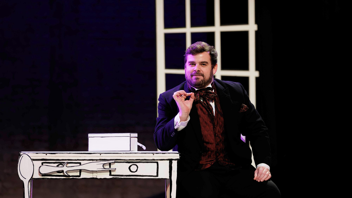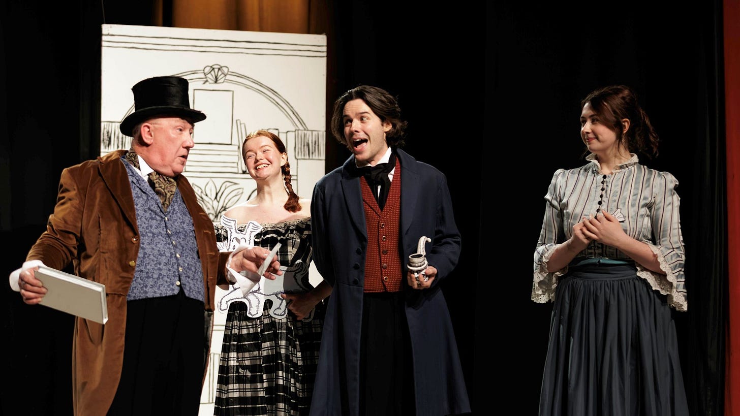 All is revealed on Kaila Moyers’ neat and very satisfying set whose props look like sketches from the kind of book Mr Dickens used to write.