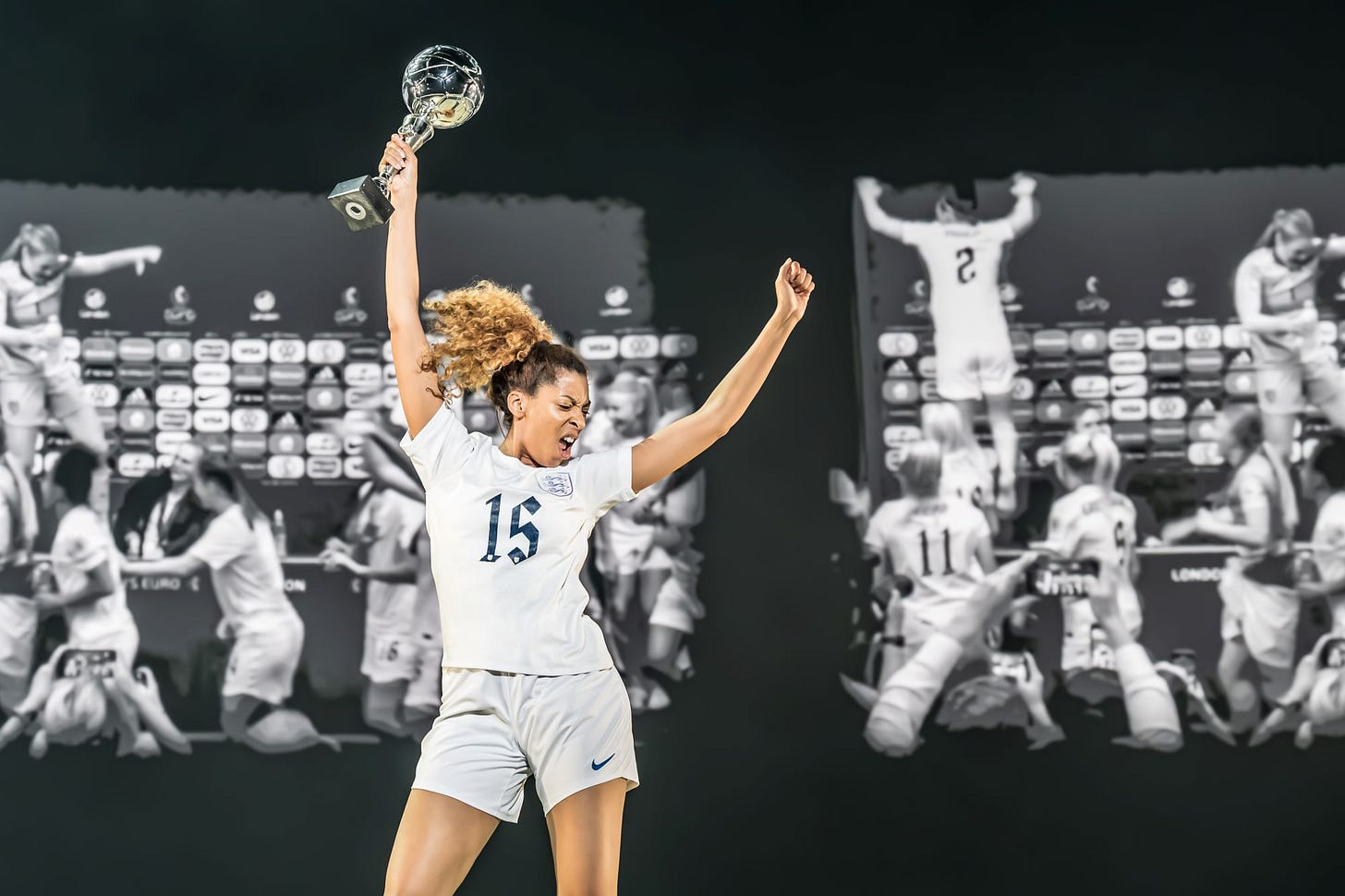 And there’s acknowledgement that while the wait goes on for England’s men, our Lionesses – represented by actress Natalie Boakye - have lifted silverware twice in the Euros.