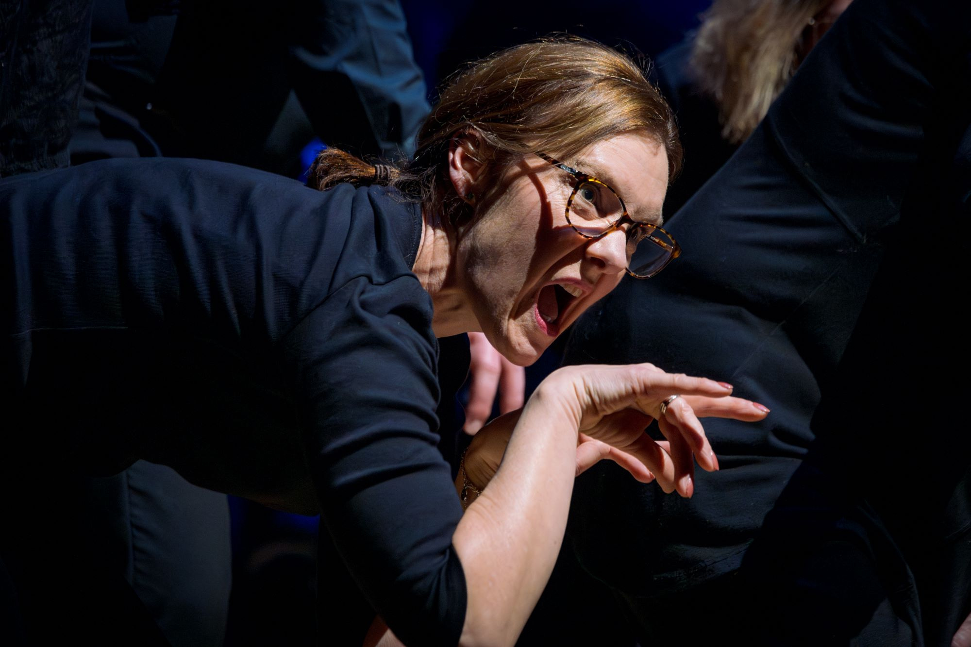 So we practised the chorus of a sea shanty and were urged to shout – ‘hoy’ or ‘ho’ or some such – at the pump of a fist. And on the third and loudest hoy/ho the lights dimmed and the music began. Dramatic and hugely effective.