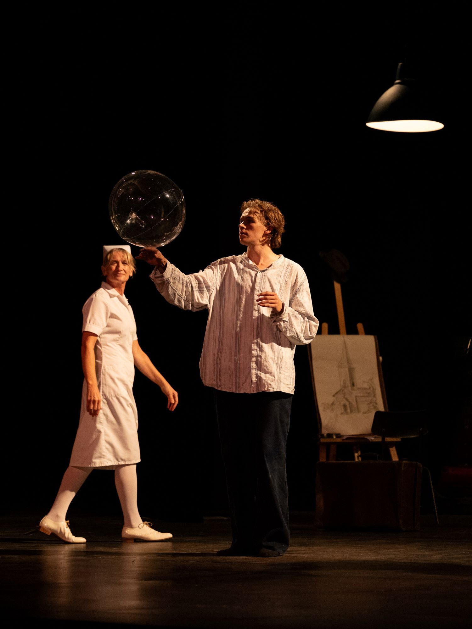 To Patient 32643, dedicated artist Dmytre, Connor Gribben brings his considerable breakdance skills, involuntary jerks coalescing into an explosive physical display before, passion spent, he slinks back to his chair.