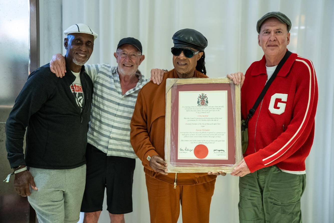 Stevie Wonder receives his Freedom of the City scroll thanks to a wee small hours visit from a determined group of Geordies