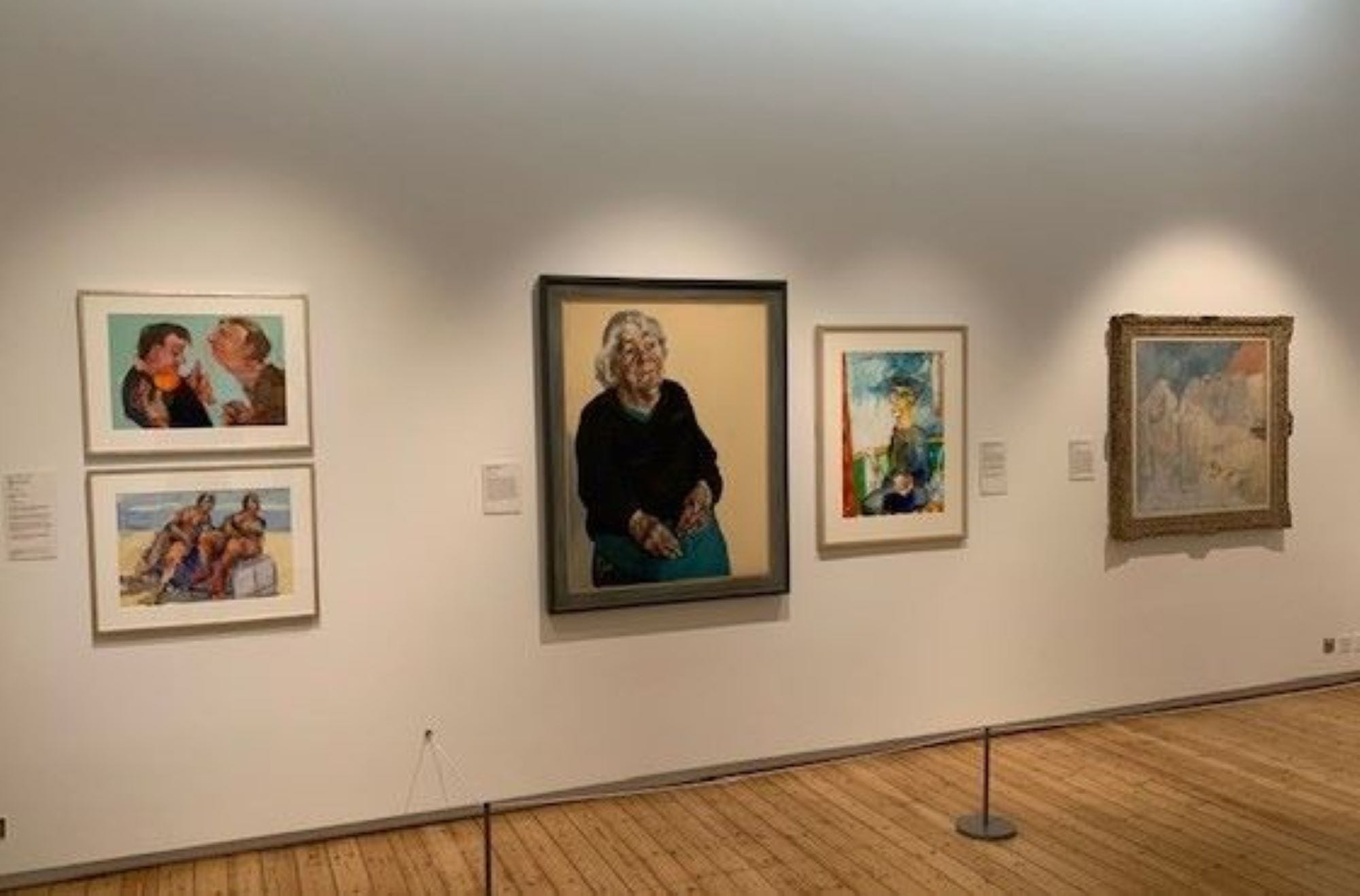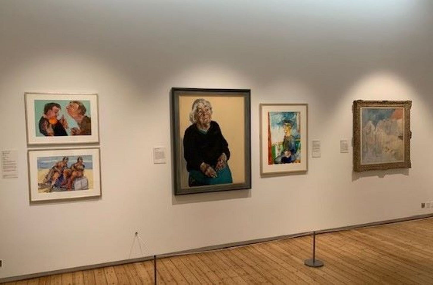 Quirky, characterful paintings fill a wall in the first room, including an insightful early portrait by Maggi Hambling of her next-door-neighbour, Frances Rose.