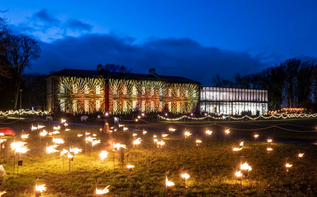 An illuminated trail featuring light installations, projections and a fire garden around The Story’s grounds.