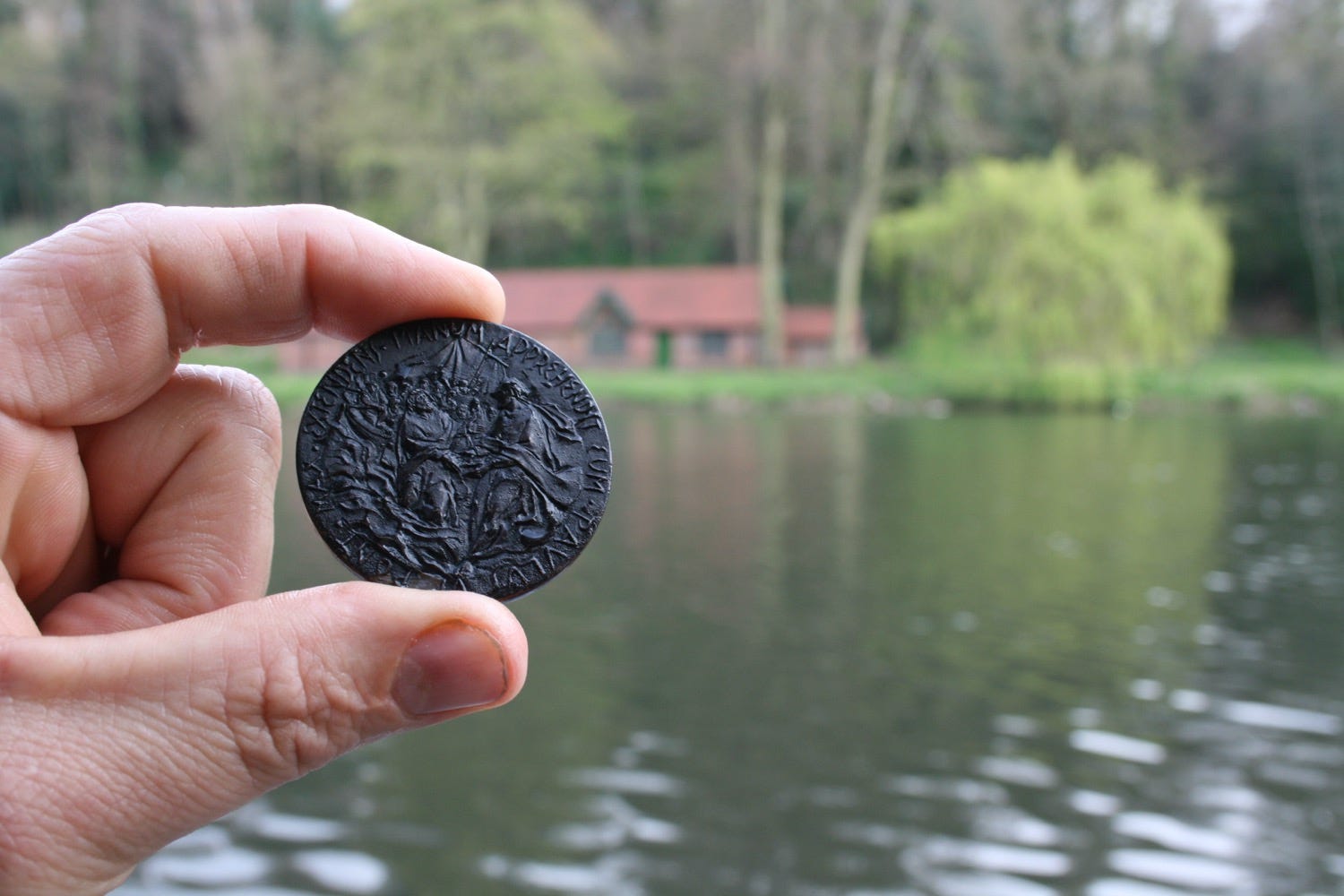 The souvenirs acquired by pilgrims include mass-produced lead and pewter objects which would have been attached to clothing, usually a hat, or worn around the neck as proof of a pilgrimage journey or a sign of devotion.