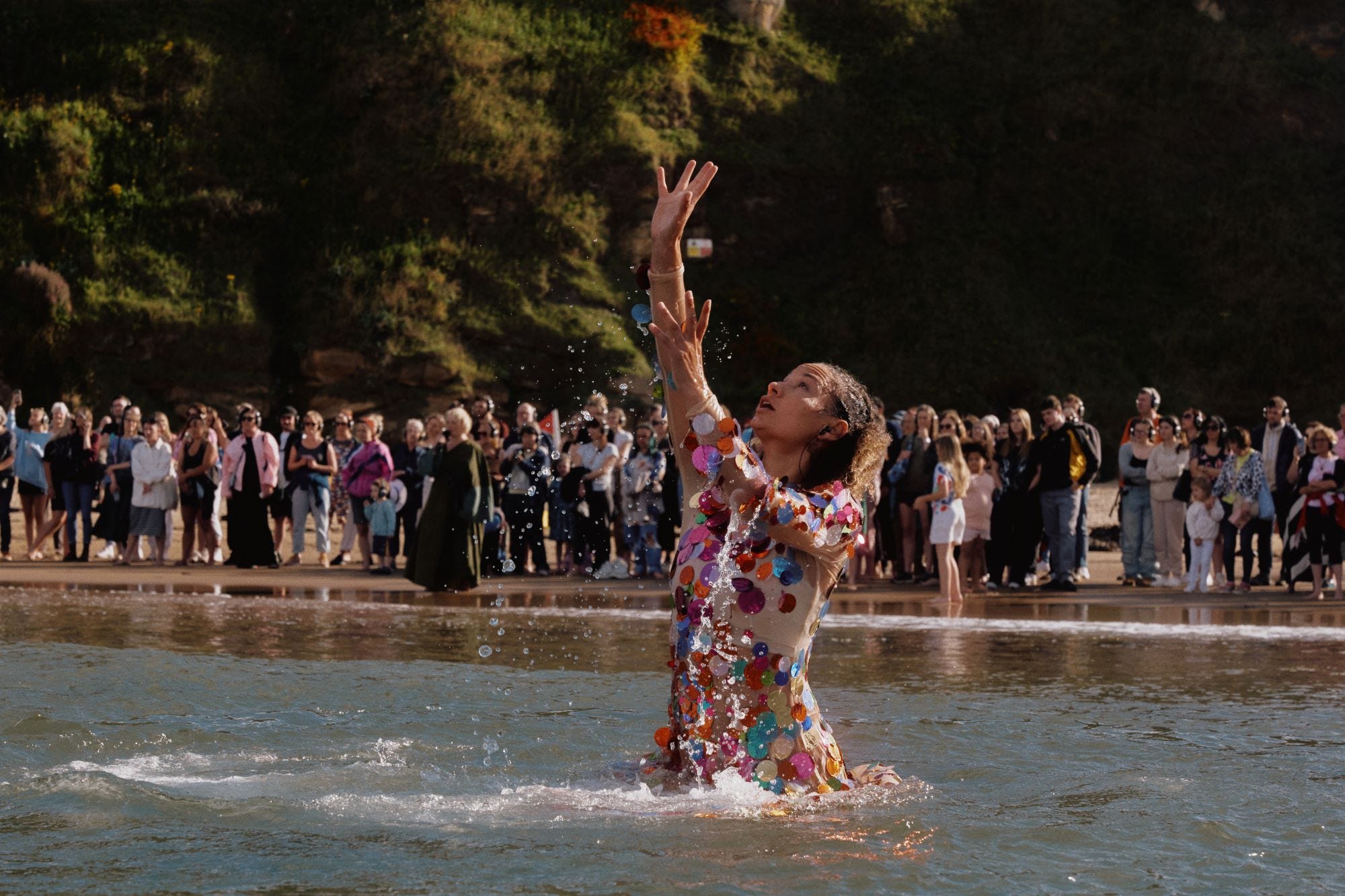 “Grief Floats,” noted an appreciative audience member in 2023, “was a precious, moving performance. The tide literally pulled us towards each body’s stories. Site specific performance at its most exquisite.”