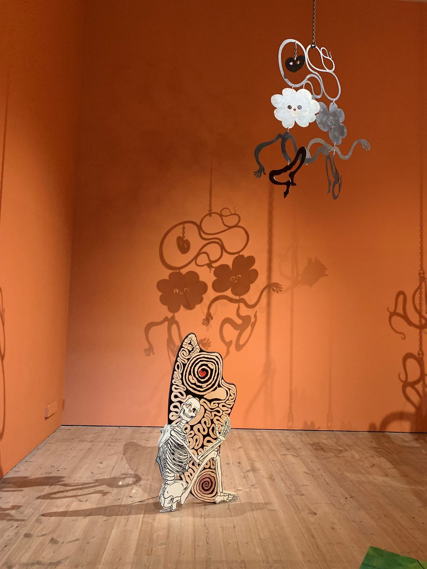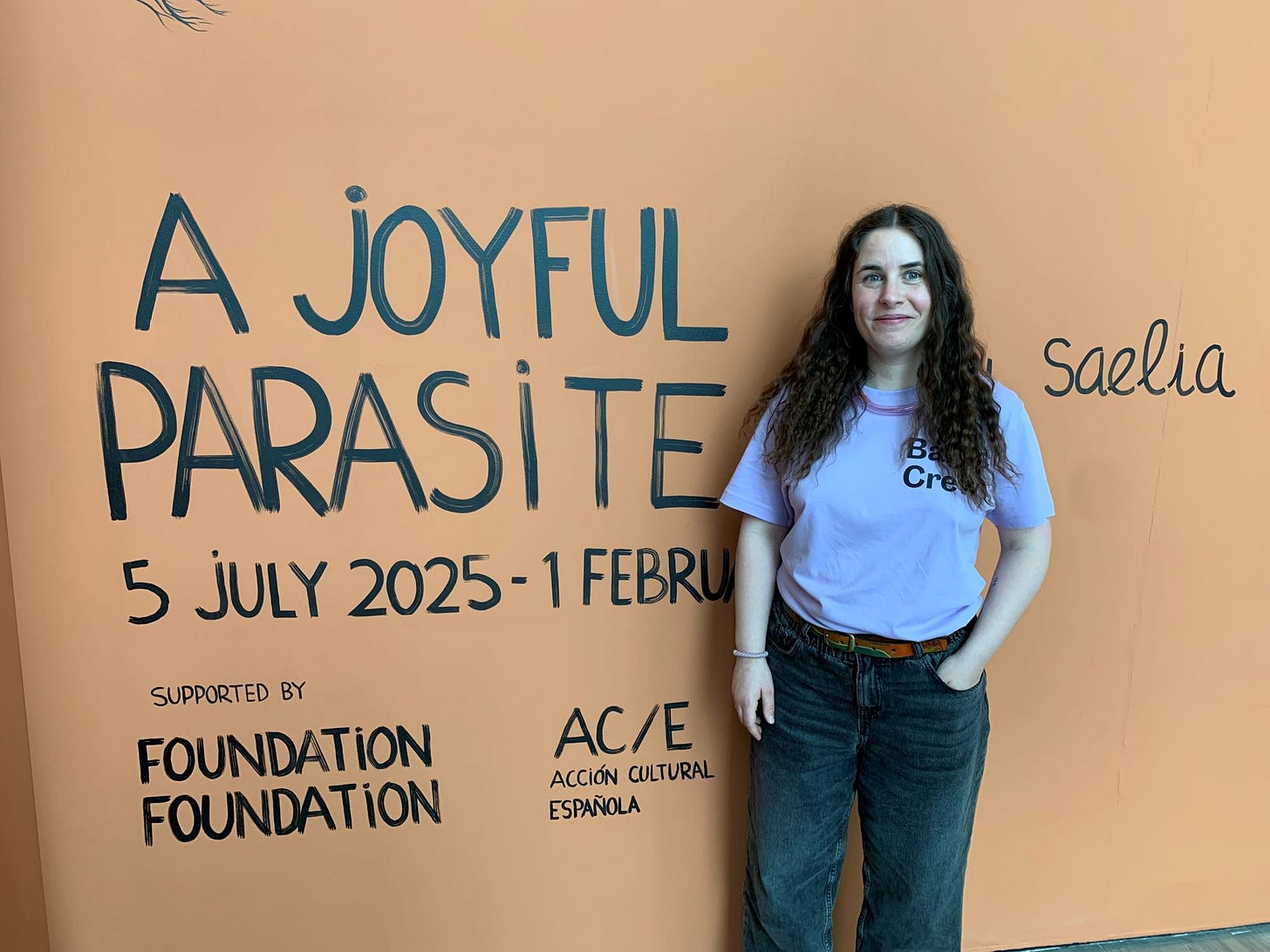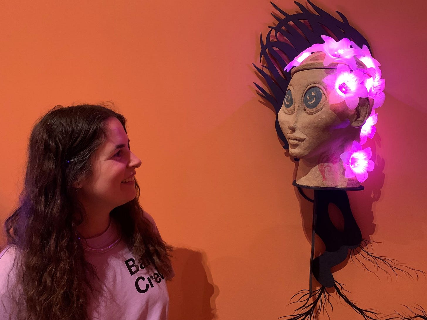 At ground level, curator Niomi Fairweather explained the background to Saelia and her exhibition, A Joyful Parasite, which also includes sculptures with mirrors and mischievous looking creatures painted on the walls.
