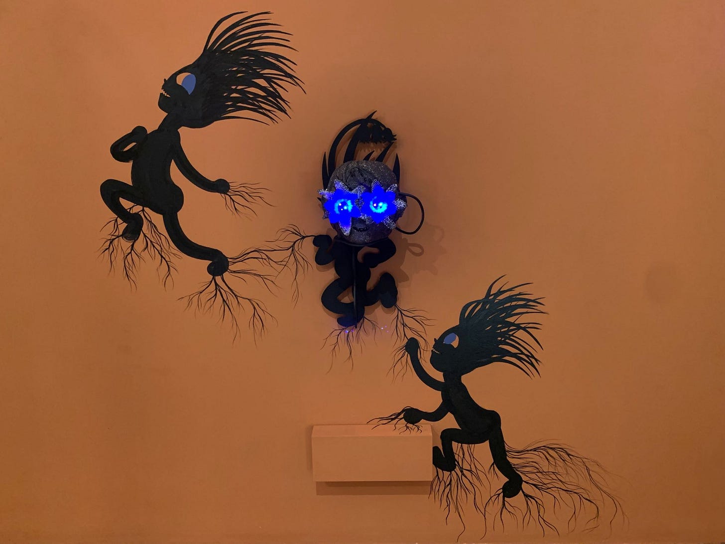 “The hanging lights were among the first works she conceived and they look incredible. I knew we could use them creatively in this space and that they’d help to bring her cute and creepy characters to life.”